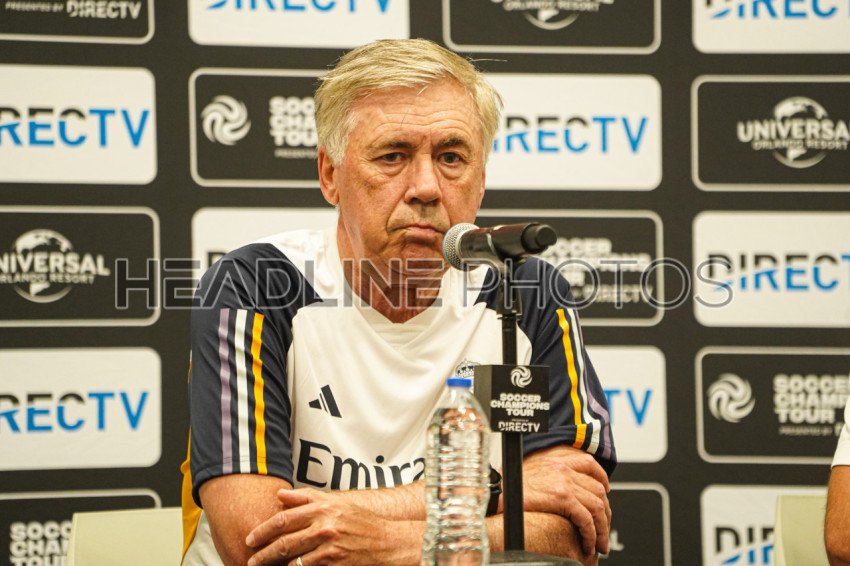 Orlando, Florida, USA, August 1, 2023, Press Conference with Real Madrid Manger Carlo Ancelotti before their Match against Juventus at Camping World Stadium . (Photo Credit: Marty Jean-Louis)