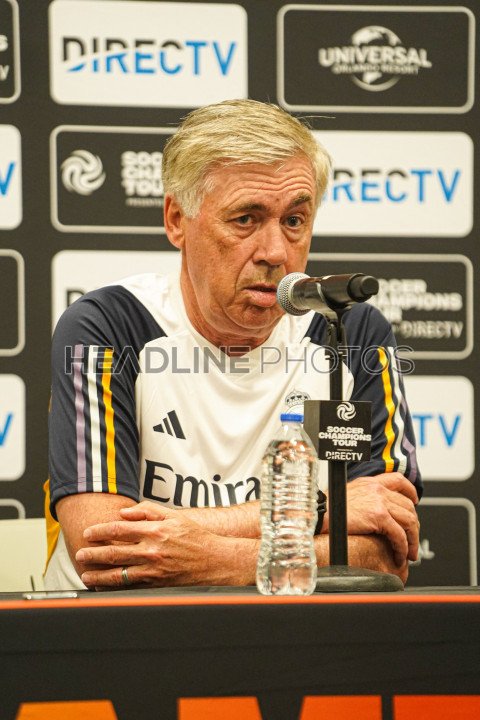 Orlando, Florida, USA, August 1, 2023, Press Conference with Real Madrid Manger Carlo Ancelotti before their Match against Juventus at Camping World Stadium . (Photo Credit: Marty Jean-Louis)