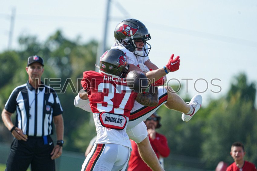 Tampa, Florida, USA, July 31, 2023, Tampa Bay Buccaneers player Ryan Miller #81 and Anthony Chesley #37 during a Training Camp at Advent Health Training Center . (Photo Credit: Marty Jean-Louis)