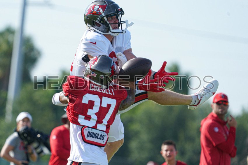 Tampa, Florida, USA, July 31, 2023, Tampa Bay Buccaneers player Ryan Miller #81 and Anthony Chesley #37 during a Training Camp at Advent Health Training Center . (Photo Credit: Marty Jean-Louis)