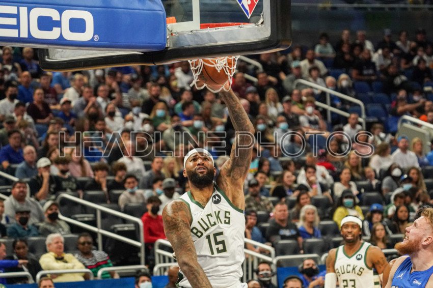 Orlando, Florida, USA, December 30, 2021, Milwaukee Bucks Center Demarcus Cousins #15 take a dunk against the Orlando Magic during the second half at the Amway Center. (Photo Credit: Marty Jean-Louis)