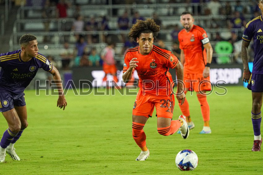 Orlando, Florida, USA, July 21, 2023, Houston Dynamo midfielder Adalberto Carrasquilla #20 runs up field during the second half at Exploria Stadium. (Photo Credit: Marty Jean-Louis)