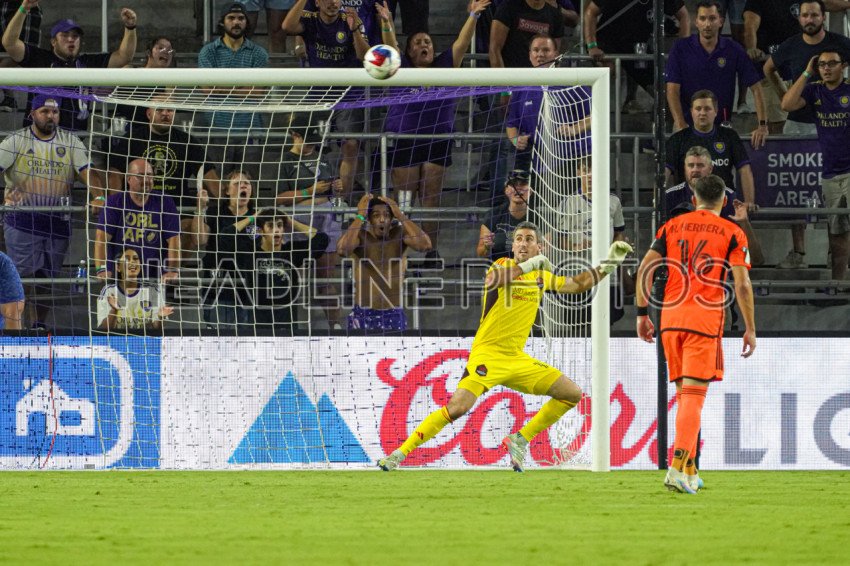 Orlando, Florida, USA, July 21, 2023, Orlando City SC player (unseen) makes a kick to nearly score at Exploria Stadium. (Photo Credit: Marty Jean-Louis)