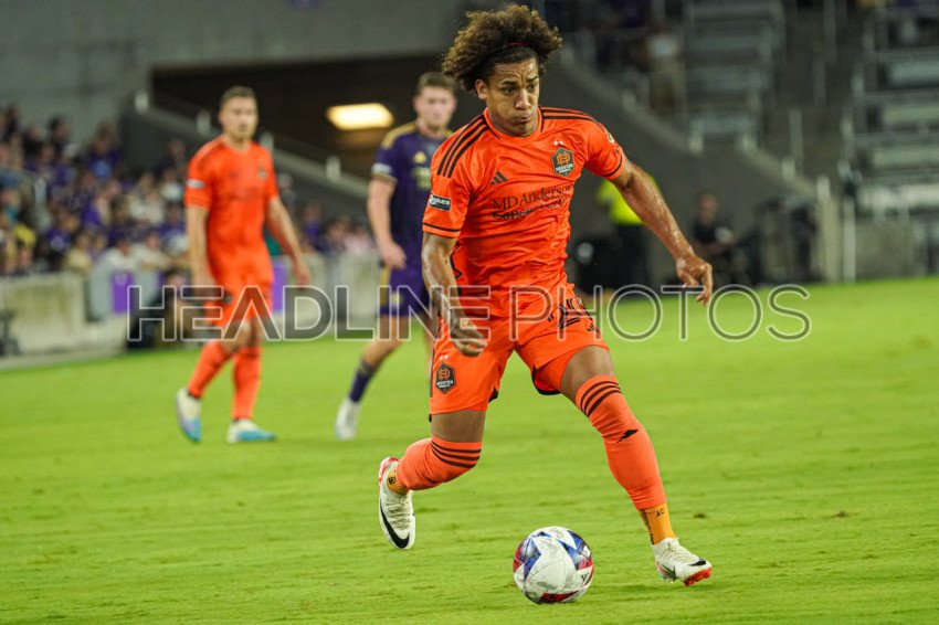 Orlando, Florida, USA, July 21, 2023, Houston Dynamo midfielder Adalberto Carrasquilla #20 runs up field during the second half at Exploria Stadium. (Photo Credit: Marty Jean-Louis)
