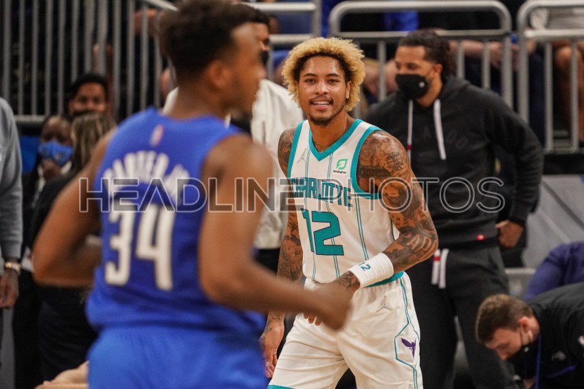 Orlando, Florida, USA, October 27, 2021, Charlotte Hornests Guard Kelly Oubre Jr #12 is smiling after making a basket against the Orlando Magic at the Amway Center. (Photo Credit: Marty Jean-Louis)