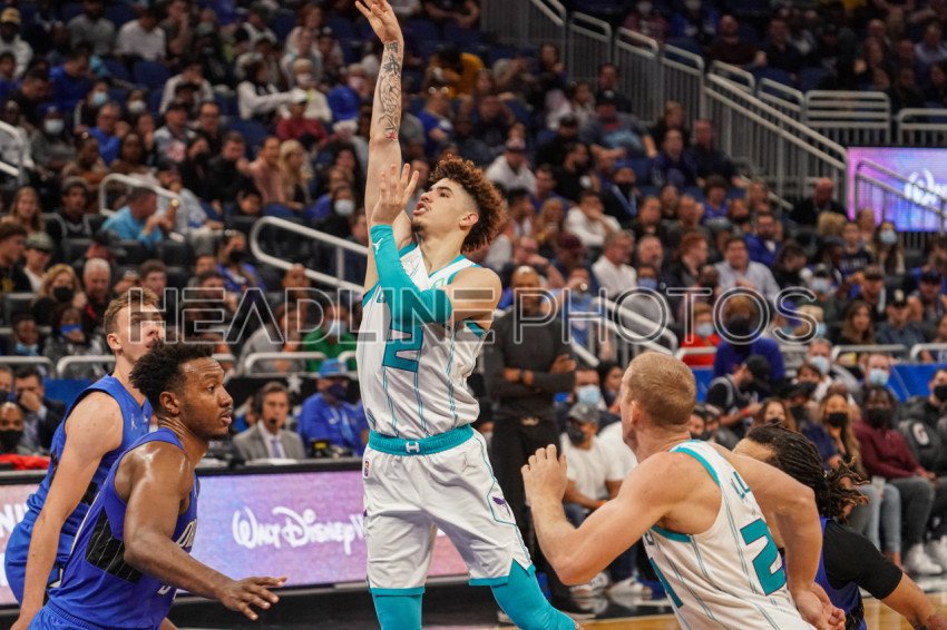 Orlando, Florida, USA, October 27, 2021, Charlotte Hornests Guard LaMelo Ball #2 attempt to make a basket at the Amway Center. (Photo Credit: Marty Jean-Louis)