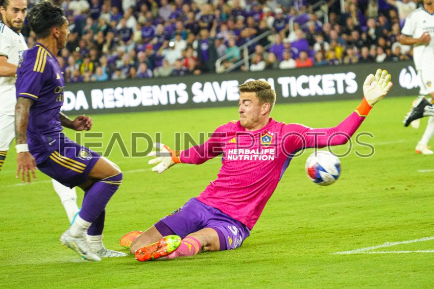 Orlando, Florida, USA, April 29, 2023, LA Galaxy goalkeeper Jonathan Klinsmann #33 attempt to make a save at Exploria Stadium. (Photo Credit: Marty Jean-Louis)