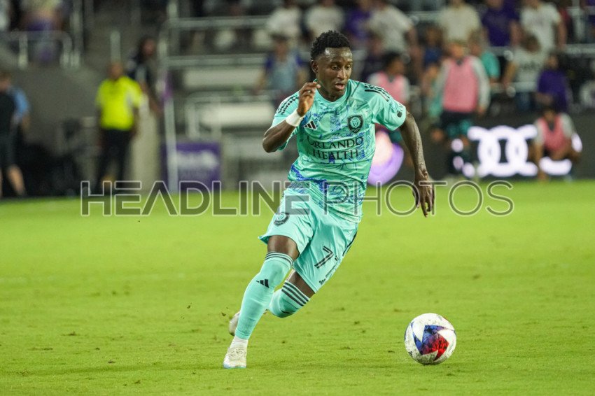 Orlando, Florida, USA, April 22, 2023, Orlando City SC midfielder Ivan Angulo #77 runs up field at Exploria Stadium. (Photo Credit: Marty Jean-Louis)