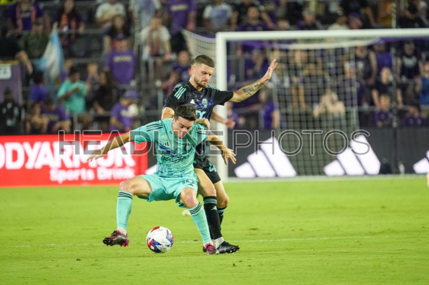 Orlando, Florida, USA, April 22, 2023, Orlando City SC midfielder Mauricio Pereyra #10 fight to keep the ball in the first half at Exploria Stadium. (Photo Credit: Marty Jean-Louis)