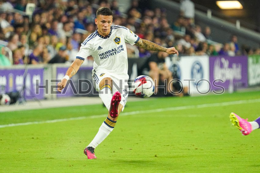 Orlando, Florida, USA, April 29, 2023, LA Galaxy defender Calegari #2 makes a pass at Exploria Stadium. (Photo Credit: Marty Jean-Louis)