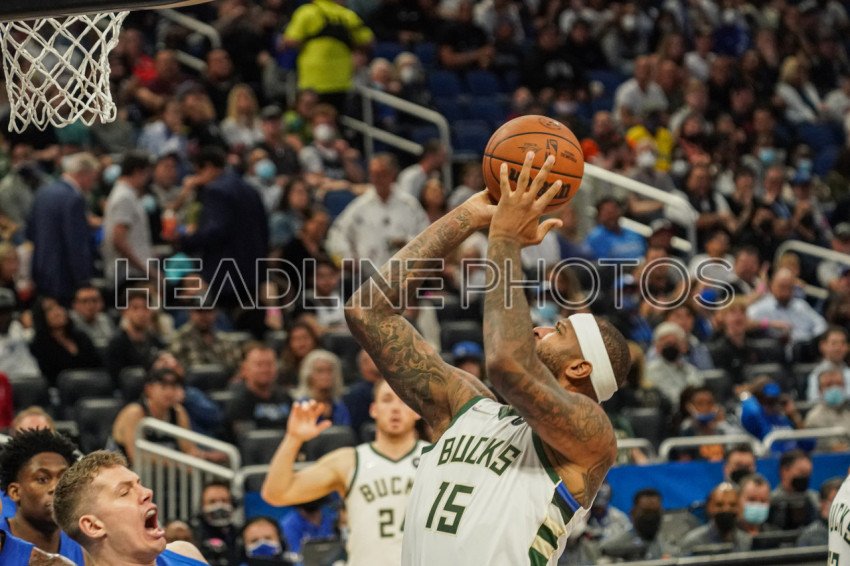 Orlando, Florida, USA, December 30, 2021, Milwaukee Bucks Center Demarcus Cousins #15 take a shot during the second half at the Amway Center. (Photo Credit: Marty Jean-Louis)
