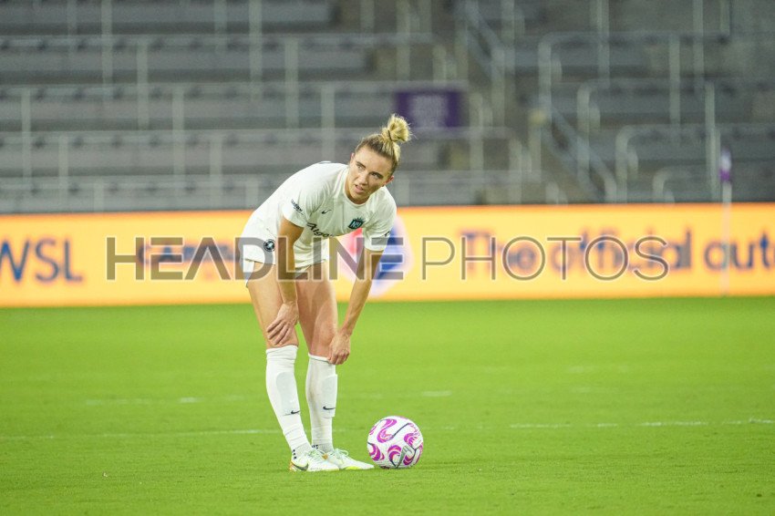 Orlando, Florida, USA, April 15, 2023, Gotham FC Midfielder Kristie Mewis #19 readies to make a kick at Exploria Stadium. (Photo Credit: Marty Jean-Louis)