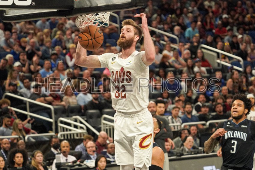 Orlando, Florida, USA, April 6, 2023, Cleveland Cavaliers forward Dean Wade #32 makes a dunk in the first half at the Amway Center. (Photo Credit: Marty Jean-Louis)