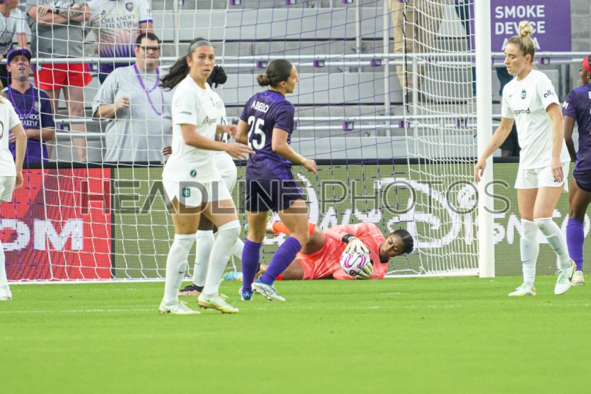 Orlando, Florida, USA, April 15, 2023, Gotham FC goalkeeper Abby Smith #4 makes a save at Exploria Stadium. (Photo Credit: Marty Jean-Louis)