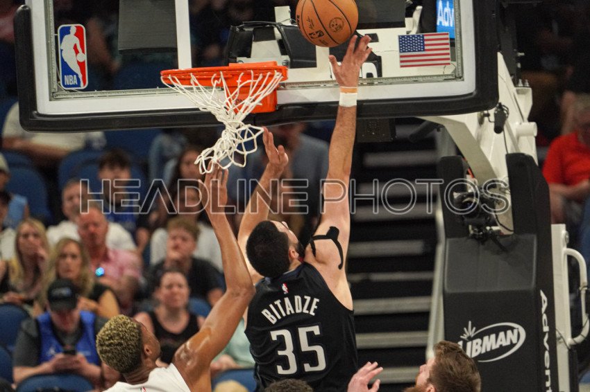 Orlando, Florida, USA, April 6, 2023, Orlando Magic player Goga Bitadze #35 makes a basket in the first half at the Amway Center. (Photo Credit: Marty Jean-Louis)