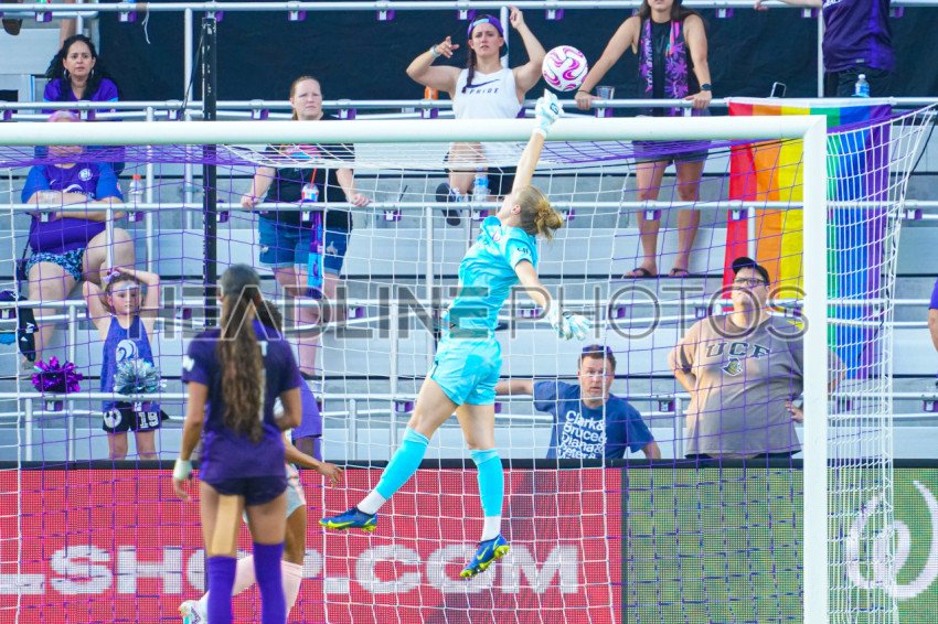 Orlando, Florida, USA, April 2, 2023, Orlando Pride Goalkeeper Anna Moorhouse #21 pushes the ball out during the second half at Exploria Stadium. (Photo Credit: Marty Jean-Louis)