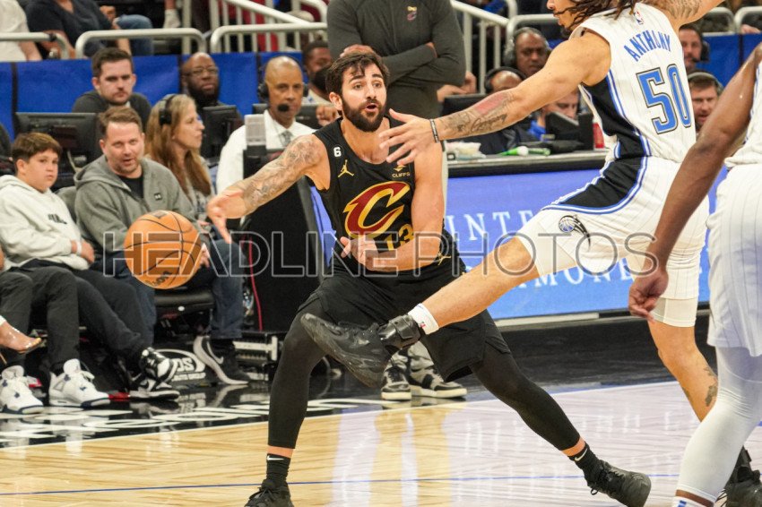 Orlando, Florida, USA, April 4, 2023, Cleveland Cavaliers guard Ricky Rubio #13 makes a pass during the first half at the Amway Center. (Photo Credit: Marty Jean-Louis)