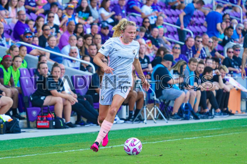 Orlando, Florida, USA, April 2, 2023, Angel City forward Claire Emslie #10 runs up field in the first half at Exploria Stadium. (Photo Credit: Marty Jean-Louis)