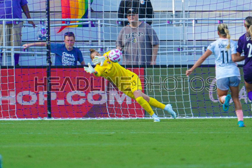 Orlando, Florida, USA, April 2, 2023, Angel City Goalkeeper Dijana Haracic #13 makes a save at Exploria Stadium. (Photo Credit: Marty Jean-Louis)