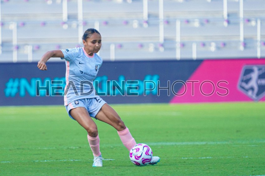 Orlando, Florida, USA, April 2, 2023, Angel City forward Alyssa Thompson #21 makes a pass during the first half at Exploria Stadium. (Photo Credit: Marty Jean-Louis)
