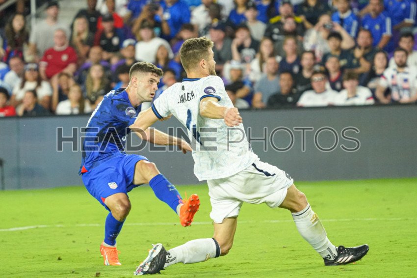 Orlando, Florida, March 27, 2023, USA captain Christian Pulisic #10 attempt to score during the CONCACAF Nations League Match at Exploria Stadium. (Photo Credit: Marty Jean-Louis)