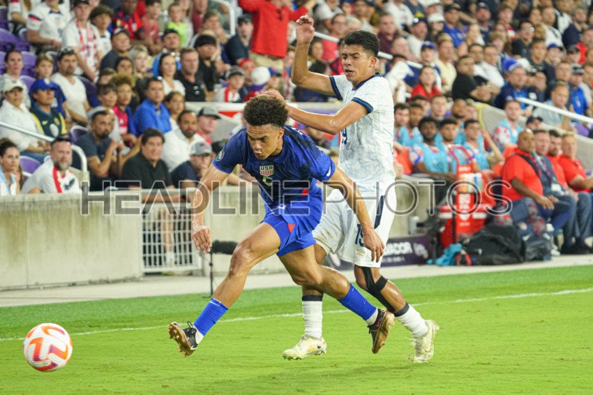 Orlando, Florida, March 27, 2023, USA defender Antonee Robinson #5 makes a steal during the CONCACAF Nations League Match at Exploria Stadium. (Photo Credit: Marty Jean-Louis)