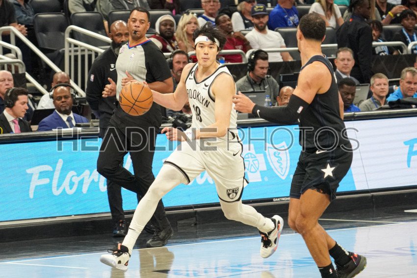 Orlando, Florida, USA, March 26, 2023, Brooklyn Nets forward Yuta Watanabe #18 runs towards the net during the first half at the Amway Center. (Photo Credit: Marty Jean-Louis)
