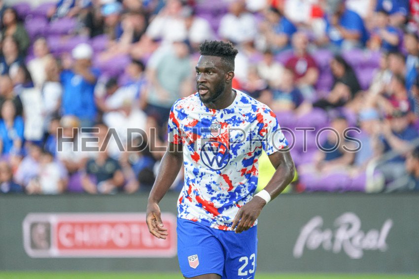 Orlando, Florida, March 27, 2023, USA forward Daryl Dike #23 warming up during the CONCACAF Nations League Match at Exploria Stadium. (Photo Credit: Marty Jean-Louis)