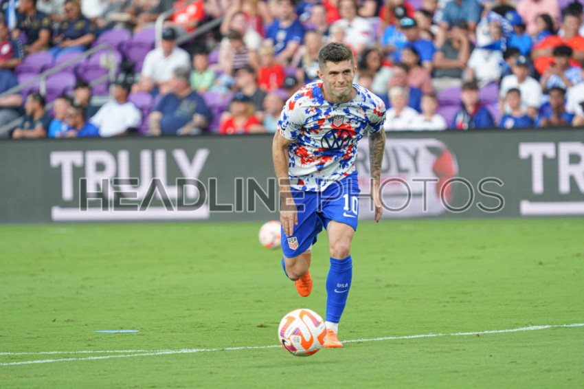 Orlando, Florida, March 27, 2023, USA Captain Christian Pulisic #10 warning up during the CONCACAF Nations League Match at Exploria Stadium. (Photo Credit: Marty Jean-Louis)