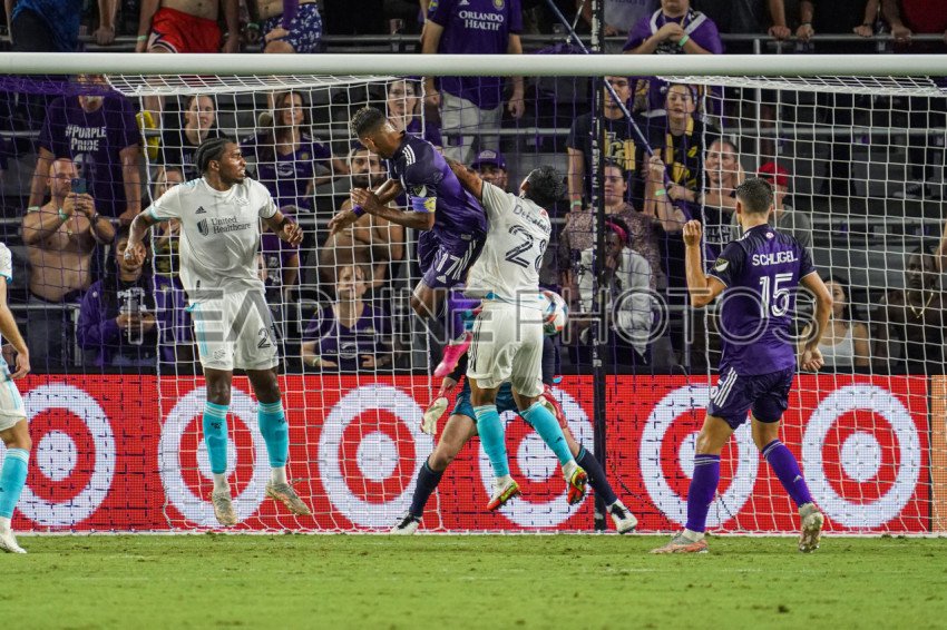 Orlando, Florida, USA, October 24, 2021, Orlando City SC forward Luis Nani #17 makes a header to score the first goal of the match at Exploria Stadium. (Photo Credit: Marty Jean-Louis)