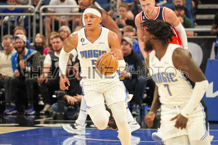 Orlando, Florida, USA, March 21, 2023, Orlando Magic forward Paolo Banchero #5 runs towards the basket in the first half at the Amway Center. (Photo Credit: Marty Jean-Louis) )