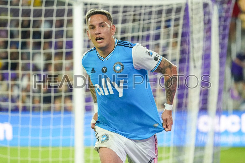 Orlando, Florida, USA, March 18, 2023, Charlotte FC forward Enzo Copetti #9 celebrate goal during the first half at Exploria Stadium. (Photo Credit: Marty Jean-Louis)