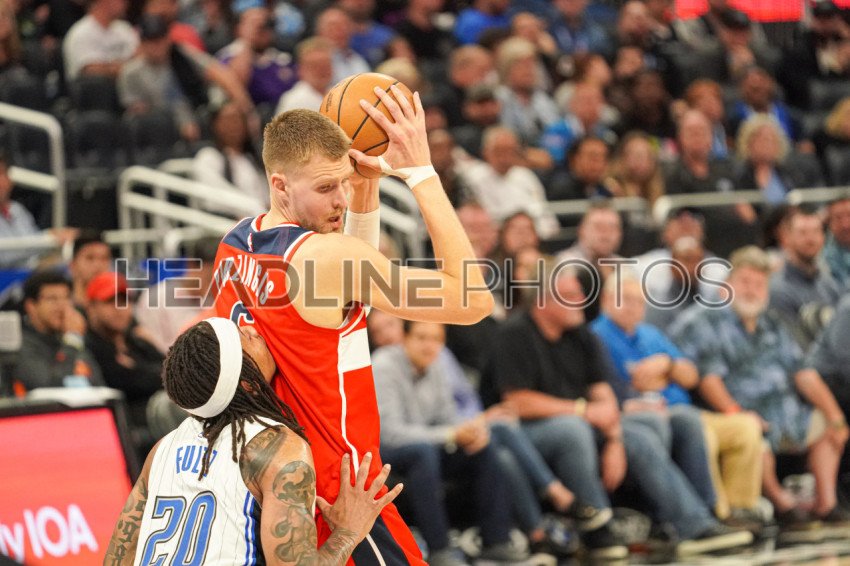 Orlando, Florida, USA, March 21, 2023, Washington Wizards center Kristaps Porzingis #6 defends the ball in the second half at the Amway Center. (Photo Credit: Marty Jean-Louis)
