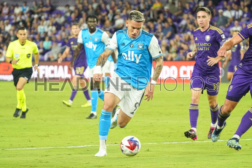 Orlando, Florida, USA, March 18, 2023, Charlotte FC forward Enzo Copetti #9 runs up field during the first half at Exploria Stadium. (Photo Credit: Marty Jean-Louis)