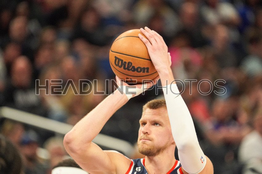 Orlando, Florida, USA, March 21, 2023, Washington Wizards center Kristaps Porzingis #6 attempt to score in the second half at the Amway Center. (Photo Credit: Marty Jean-Louis)