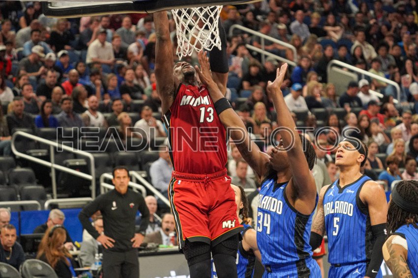Orlando, Florida, USA, March 11, 2023, Miami Heat Center Bam Adebayo #13 makes a dunk against the Orlando Magic at the Amway Center. (Photo Credit: Marty Jean-Louis)