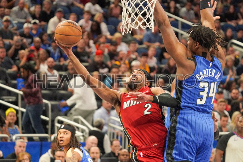 Orlando, Florida, USA, March 11, 2023, Miami Heat guard Gabe Vincent #2 attempt to score at the Amway Center. (Photo Credit: Marty Jean-Louis)